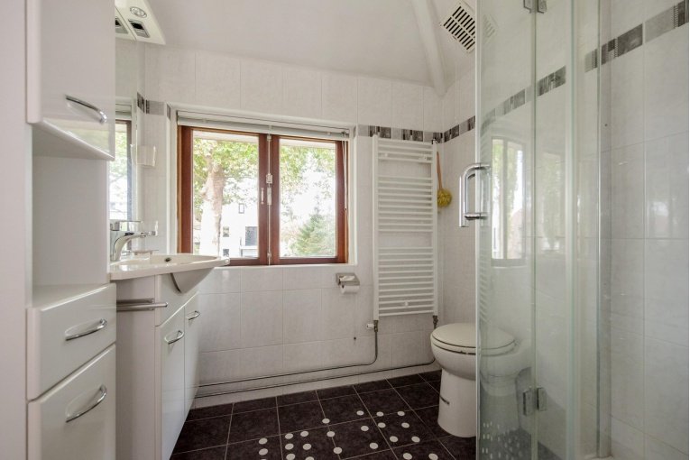 Overloop. Nette badkamer voorzien van wastafelmeubel, douche en toilet. Voorslaapkamer. Achterslaapkamer. Achterzij-slaapkamer met toegang tot het terras. Vanuit de kast in de voorslaapkamer is er een luik naar de zolderruimte (alleen opslag ruimte).