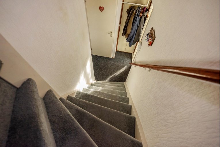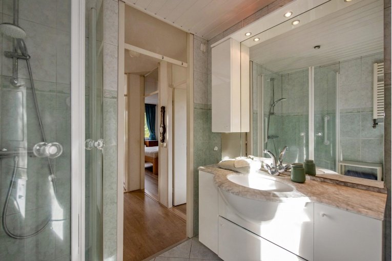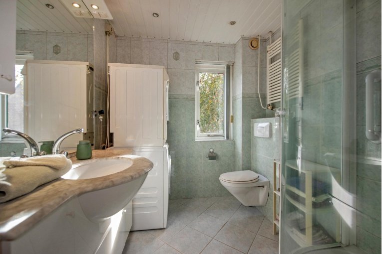 Overloop, 3 slaapkamers, badkamer voorzien van 2e toilet, douchecabine, vaste wastafel met meubel en wasmachine/drogeropstelling.